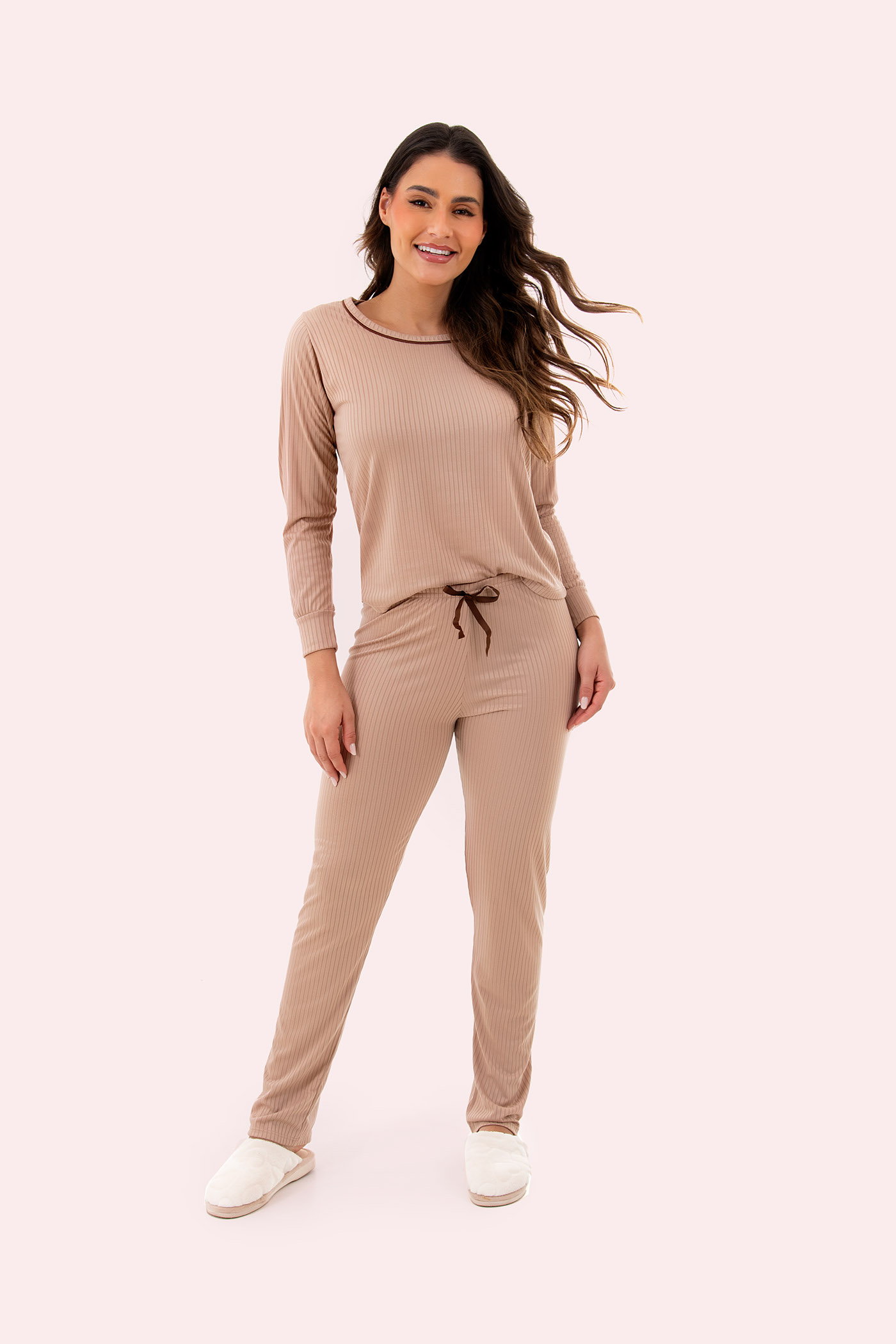 PIJAMA SUEDE CANELADO LISO - 2170